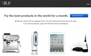 Ybuy.com es una especie de club de compra. Los usuarios deben pagar $25 al mes por la membresía, sin embargo cuando deciden quedarse con el producto que están probando, los $25 dólares que pagaron ese mes se aplica como descuento al costo del producto que compraron.